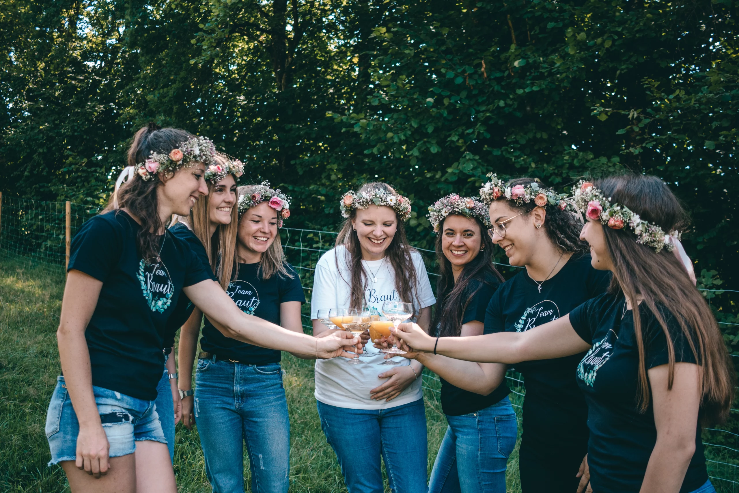 Lasst es an einem schönen Tag mit deinen Freundinnen noch einmal ordentlich krachen bevor natürlich der allerschönste Tag ansteht. Den Tag mit deinen Freundinnen könnt ihr mit einer Konfettischlacht, einem Spaziergang oder mit lustigen Accessoires in einem Fotoshooting festhalten. Somit entstehen lustige Foto und Momente, an die man sich gerne erinnert zurück erinnert beim Anschauen der Fotos.